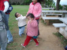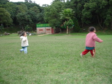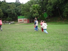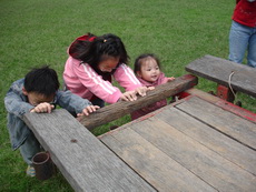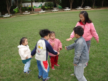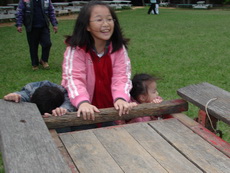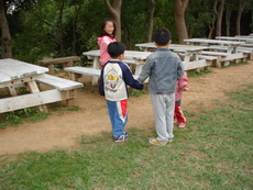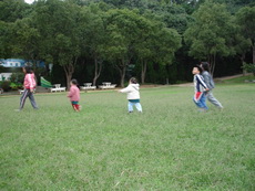玩了一陣子,婷婷和達哥又帶著三個小的玩些別的,只是他們在小學裡玩的遊戲,三寶怎麼會呢!達哥又提議玩躲貓貓,只是一大片的草地是要躲到哪呢?於是胡亂玩了一陣,大多的時間還是在草地上追逐跑跑。