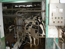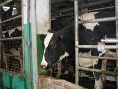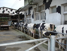 在入口處可以看到一群牛排隊要等著擠奶,可能是漲奶難過吧,有的牛就一直往前擠,有的牛會乖乖地等,有的牛還打瞌睡咧,我們戲稱是牛的阿公。