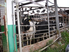 接近傍晚 (相片的效果其實是鏡頭採光的關係,天還沒那麼黑啦) 離開草地,再去看看擠牛奶。