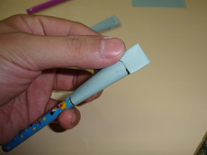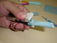 接著拿支鉛筆,把紙片靠在筆上,之後就一路滾過去,整個捲起來即可,儘可能捲得緊一點,才不會鬆鬆的容易掉。