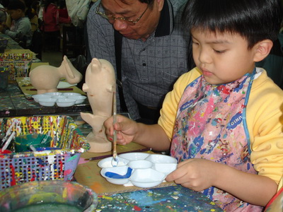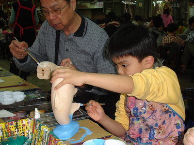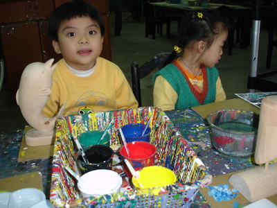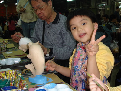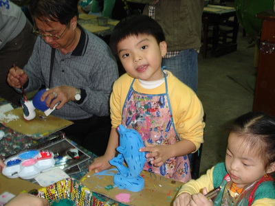 今日的巧手創意專欄又要出外景了,這是在三義的ㄚ箱寶進行的彩繪鴨的活動,不過鴨子以前畫過了,這次換一個,首先要挑選要繪製的海豚木雕…