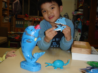 這次是藍色的海豚,和家裡的其他 sea animal 作品擺在一起,可以構成有趣的海洋世界。