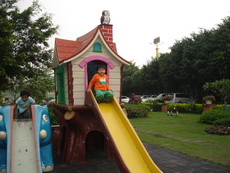 在前二年流行的庭園主題餐廳中,位於泰山的這家─城市花園,雖然一直列於筆記本中,但一直沒有機會前往,漸漸地也淡忘了。而今天晚餐一直苦思不得後,臨時想到了它,依照印象中的路前去尋找,還在。趁著天色還未昏暗,先向櫃台訂好座位,就讓三寶在庭園裡先玩一陣。