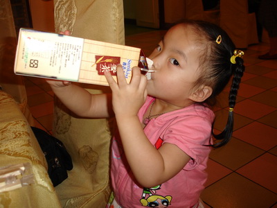 吃完準備離開前,小潔躡手躡腳地走到旁邊,把桌上的飲料瓶整個拿來喝,灌完一瓶又換一瓶,真有這麼渴嗎?