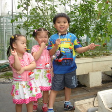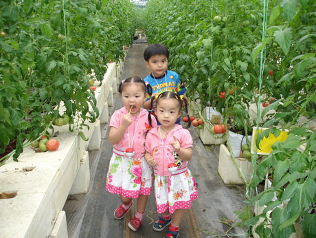 下午開車亂逛,媽媽提議再去金勇農場,於是便前往。此時草莓季節已過,但園裡的主角蕃茄仍在產季,因此多數的遊客均在此採蕃茄。我們此行暫無計畫採果,只到園區看看蕃茄而已。