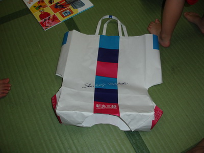 沒法做紙箱,改用紙袋也行吧,只要用剪刀剪三個洞就行了。