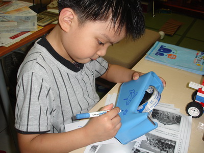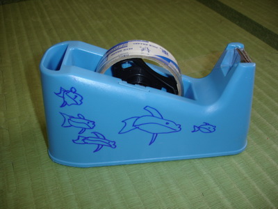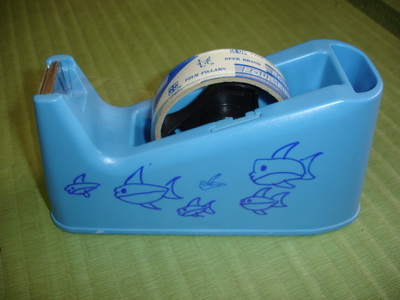 就這樣,全新的膠帶台,就讓寶寶為它畫上了一些海豚。媽媽看了,也覺得很好看呢!
