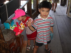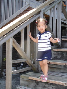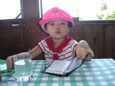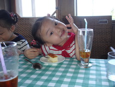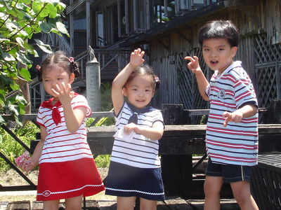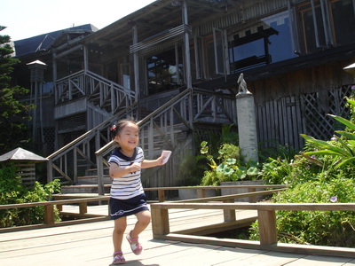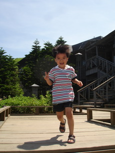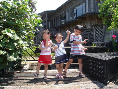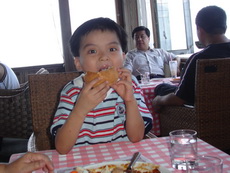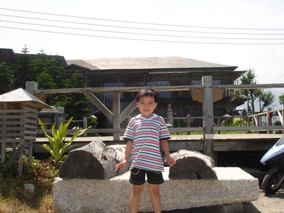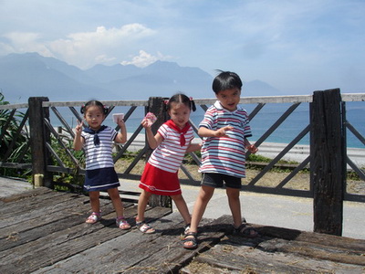 寶寶想到海邊玩,我們也想,但太陽太大,所以還是克制住,僅讓他們在餐廳外追逐跑跑。