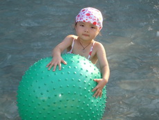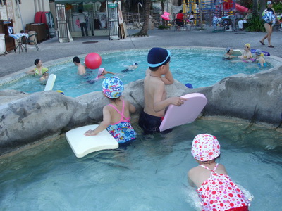 在中島上有一座兒童戲水池,池上有一些噴水的設施,三寶們玩了一下,我們便轉移陣地到了游泳池。
