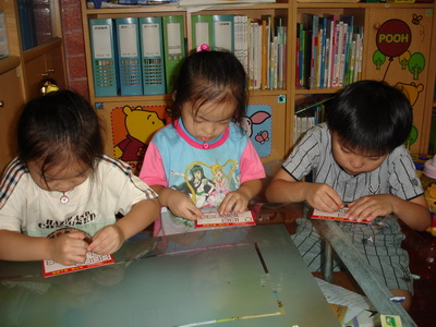 綸 7 歲 (幼稚園畢業)  ●  蓉 5 歲 (3Y10M)  ●  潔 4 歲 (2Y12M)