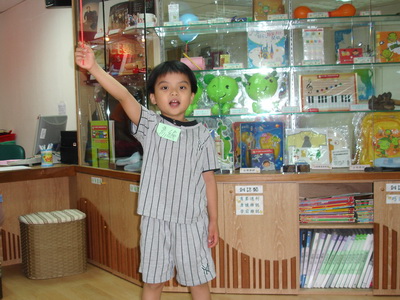 我們認真地觀察著寶寶,他在近二十個人屬於年紀最小的一年級生,動作上略遲一步,而且有點不專心,常常回過頭來看我們的反應。不過年紀和音樂細胞也無直接關係,有看來是高年級的小朋友,動作反應很僵硬,可以慢八拍;也有看來年紀更小的小朋友,卻反應靈活。原本以為來學音樂的小朋友都是較為文靜的,結果完全不是那麼一回事。媽媽觀察到多數的小朋友是屬於好動性,因此想到這些家長,也許就是因為小孩過於活動,所以想用音樂來陶冶調和一下品性。有的小朋友確實是非常好動,爸爸就一直在看著一個小朋友,把鐵琴舉在手中胡亂揮舞著,實在很緊張地看他接著要 K 的是究竟是哪一個小朋友的頭,不過幸好都是從別人頭旁邊掠過,有驚無險。