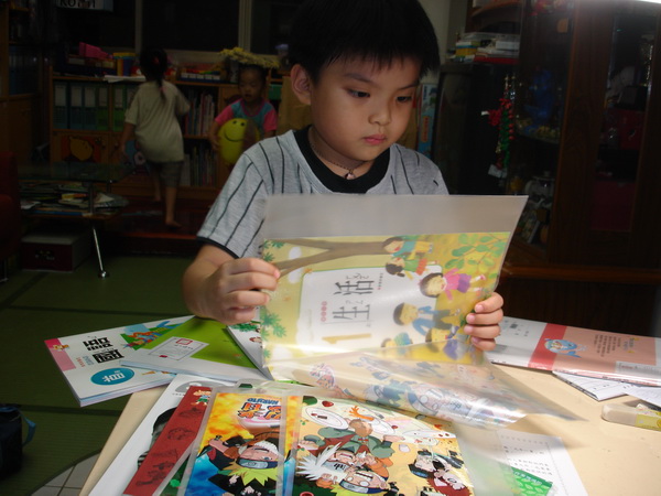 從學校領回了新書,趕緊去買了書套來裝。