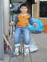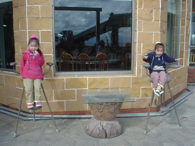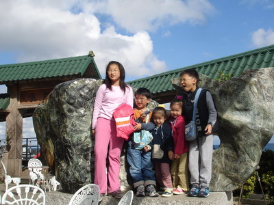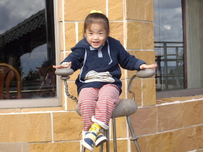小朋友們吃到一半飽了,就通通出去跑跑。阿婆在近一個月前買了三台數位相機給婷婷、達哥和寶寶,所以三個人也到處拍,五個小孩子在餐廳外玩,隨處可看到店老闆擺設的裝飾品,也就一一入鏡。