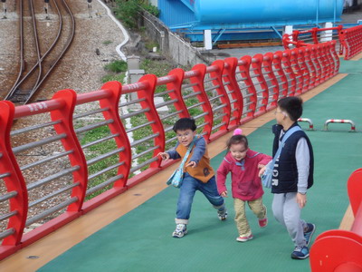 附近並無景點或遊樂設施,但小朋友在坡道上跑上跑下,就可以玩得很快樂了。