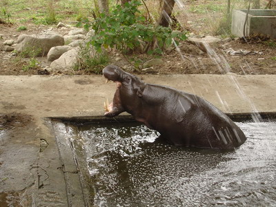 小河馬不停地張嘴,又合起來,又張嘴,又合起來。