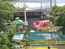 抵達池上的時間較預定的早,因此在原先計畫的午餐─池上便當或到牧野渡假村─選擇了後者。花東地區的農場都有個共通點,就是佔地很廣,從大門口彎進去,都還得開好長一段路,途中看到了牧野渡假村的一大特色,蒙古包的住房。再往前又看到好像關起門的餐廳,再往前好像是個眷村般的房舍,路上也沒看到什麼人,一時之間感覺有點奇怪。