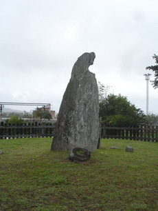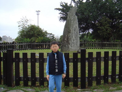 卑南遺址的範圍很廣,我們又步行到附近另一個推薦的景點─月形石柱。月形石柱附近是史前聚落的中心,但石柱的用途及意義仍是未知的謎。蓉蓉後方便是月形石柱,而另一張照片則是台鐵台東站及中華電信的大型發射塔,千萬別把史前和現代搞混了。