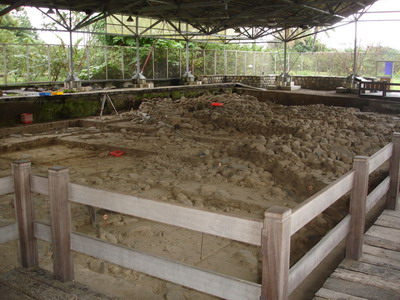 考古現場上面架設棚架,周圍以木籬笆隔開遊客,若是平常工作日,這裡仍是在進行挖掘探勘的工作,但卻因正值假日,所以反而看不到讓人參觀的工作人員。