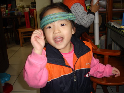 趁哥哥去上學,趕快把哥哥的頭巾拿來戴一下。