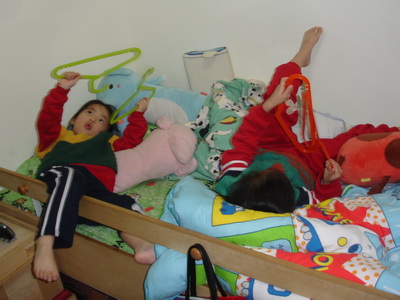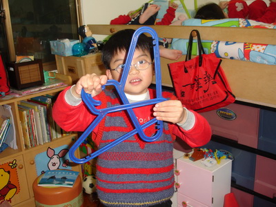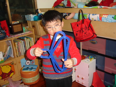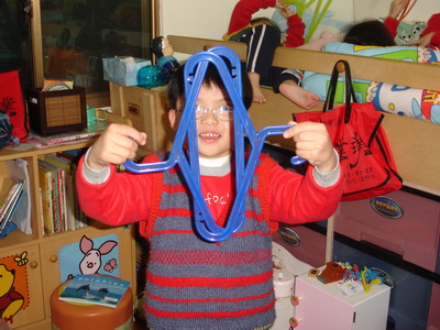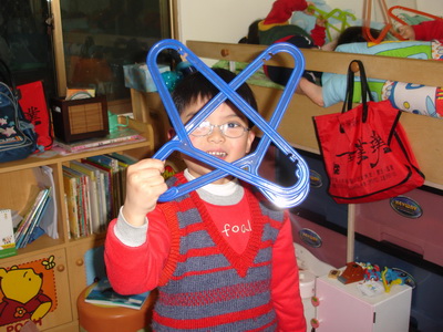寶寶把兩個衣架加以組合,好像可以玩出一些有趣的東西。