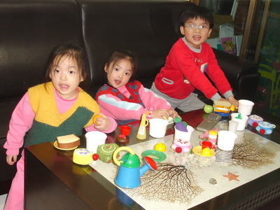 三寶玩辦家家酒,辦了一桌子豐盛的菜。