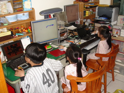 也許改天可以在家裡連線,不過目前小朋友只會玩小畫家,好像沒有連線一起塗鴨的軟體?