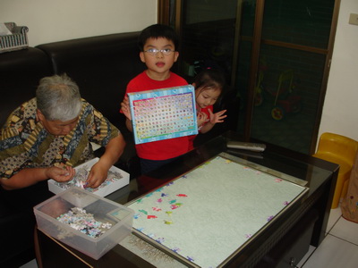 其實第一次是爸爸、媽媽和阿婆為主力合拼完成的,小潔也常常來幫忙,而寶寶,好像只是在等待最後的成果。由於是寶寶的禮物,所以最後一片就特別留給他了。