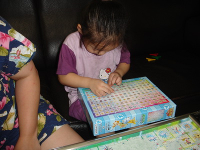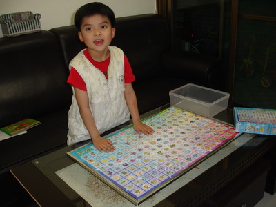 寶寶的期中評量考了滿分200分,阿婆在考前有承諾若是再度考滿分,就要送他一個拼圖。考完試,老師當天就發表成績,而我們也在晚上火速到環球購物中心買了拼圖。