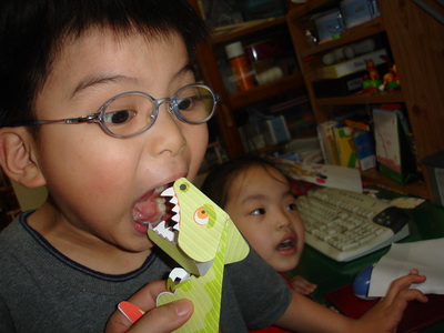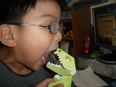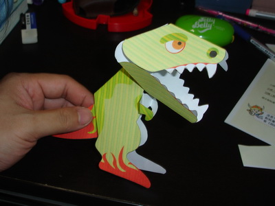 寶寶做的立體紙藝,是一隻可以按壓兩頰邊的紙,嘴巴便會一張一闔。