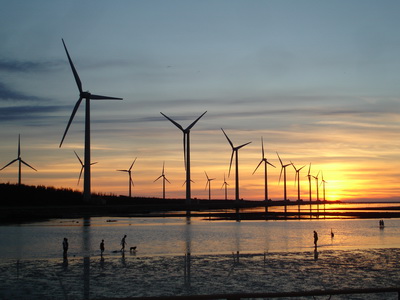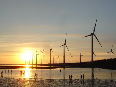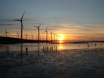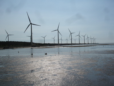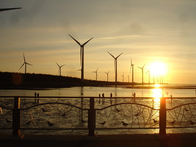在網路上看到高美濕地的介紹,一方面是廣浩的淺海濕地,另一方面就是黃昏的夕陽景象。所以原訂安排這一段行程是在接近傍晚時,但有點不湊巧的是一路南下的車程太順,而從清水市區到高美濕地的距離又出乎意之外的近,所以當車開到高美濕地的海邊時,只到下午三點。