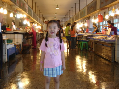 約四點全部都醒來後,再進入台中港觀光漁市逛逛。上次來此是五年前,蓉蓉和小潔都還未出生,帶著婷婷和達哥在此騎電動車。大家嘴裡都沒說,但心裡似乎想的都是同一件事,所以在入口處看到空盪盪一片,沒見到電動車的小販,都有種希望落空的感覺。