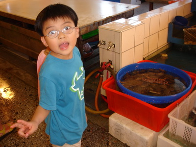 台中梧棲港的玩法有兩種:一是買海鮮,二是吃海鮮。我們預計出遊三天,不可能在此買生鮮的東西,而晚上的行程是去逛夜市,所以也不能在這裡吃東西。走在漁市裡,不能買又不能吃,真是非常無奈。
