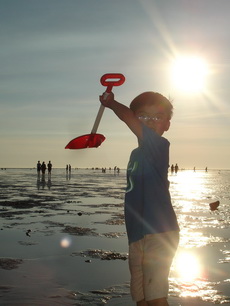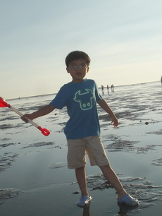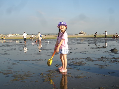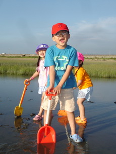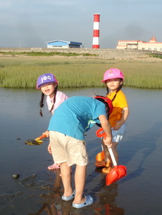 三寶帶的挖沙鏟子根本發揮不了作用,因為濕地其實都是泥巴,不同於我們在北部海邊慣玩的沙灘。