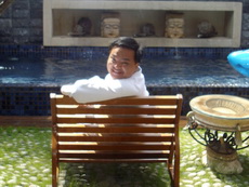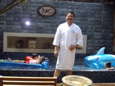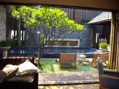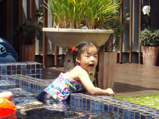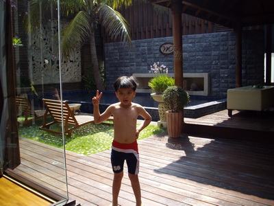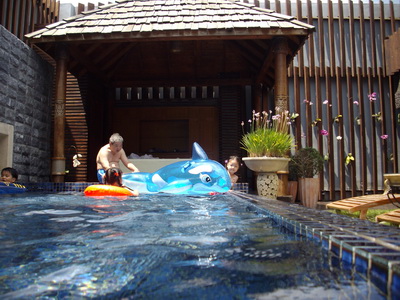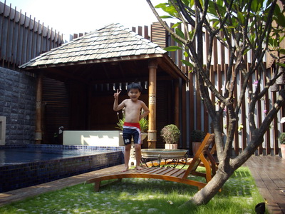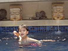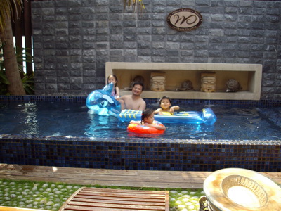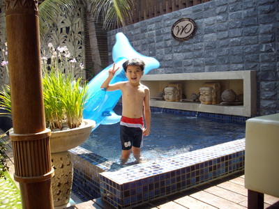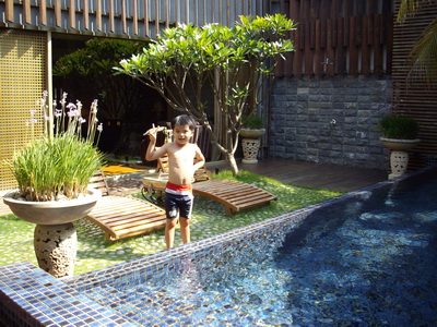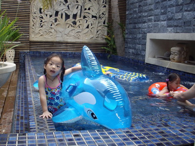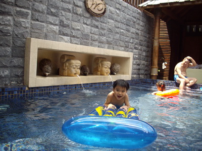 泳池邊有兩個峇里島原始的頭雕,水便是從他們的嘴巴不斷流出。