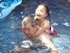 而是真地像海豚一樣會一次又一次地從水裡鑽出又躍出水面 (當爸爸有夠累)