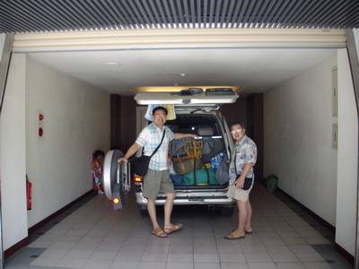 一直到近十二點時期限,我們才離開,充分享受 MOTEL 裡的時光。進到車庫,爸爸又變高了。