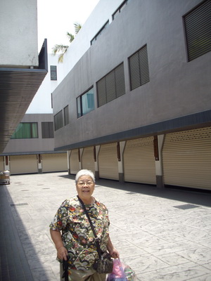 阿婆到外面一探汽車旅館的設計,也終於了解我們那間房為何如此大。這整棟有八個車庫,除了我們這間,其餘都是從一個車庫連到二樓的一間房間,而整個三樓的部份,就是我們住的這一間帝王行宮,從外面果然可以看到游泳池旁邊的桏子樹,就在三樓最遠的地方。