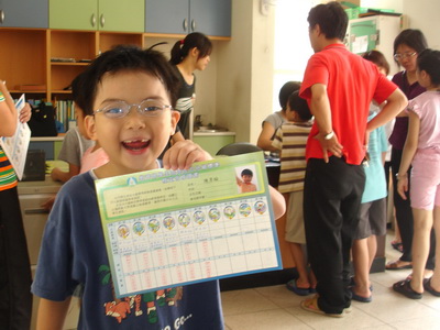 六級合格的章蓋在檢定表上,寶寶也非常興奮。他的興奮也馬上反映在他的嘴上:『把拔,我們現在就去買禮物。』