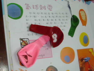 寶寶在書上看到一個氣球雜耍的勞作,便也想自己做一個,檢查了一下所需的材料,很簡單,家裡都有,於是就跟著他做氣球砂包,首先準備兩個氣球,必須底部是圓的,將它吹大後再放氣,目的是要使氣球變得鬆一點。