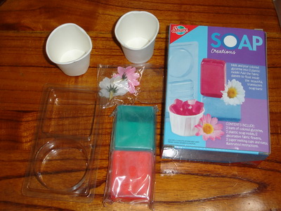 材料包內的材料很簡單,其實也就是把一塊肥皂 (通常稱為皂基) 溶化之後,再重新凝固變成肥皂。就如同有一個親戚曾說,拼布就是把布剪開,再把它們縫起來。