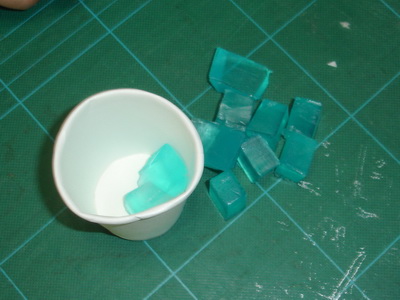 然後放進微波爐裡加熱三秒,若還沒溶化,則間隔二秒再加熱三秒。只是我們微波了數次,實在看不出來皂基有要溶化的跡象。