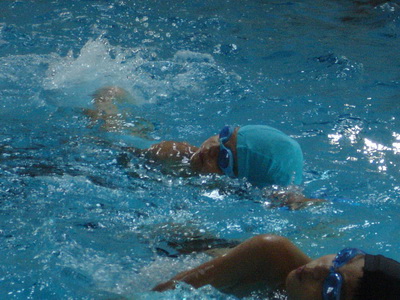 教練開始要求一趟要能游到對岸後立刻再游回來 (約25公尺),一位看似高年級的女孩子嘴裡嘀嘀咕咕著,只聽到教練又大聲喊:『游泳當然會累啊,誰不會累…』