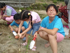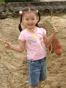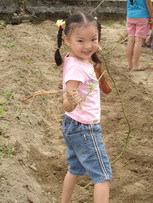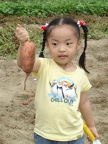蓉蓉動作最快,只要一有地瓜的頭露出來,她馬上就一一搶著拔出來。