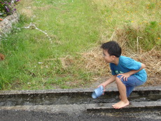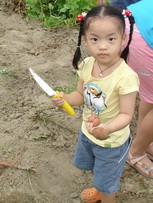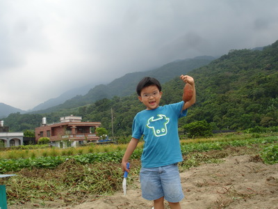 寶寶本來挖得好好的,在阿公叫他看田裡的一條蟲後,就再也不到田裡去了。