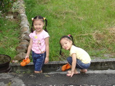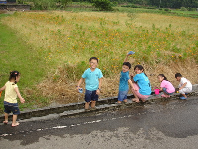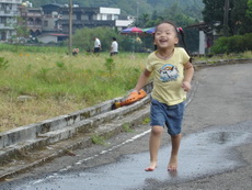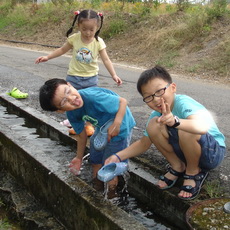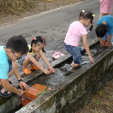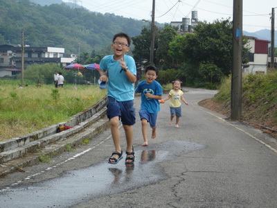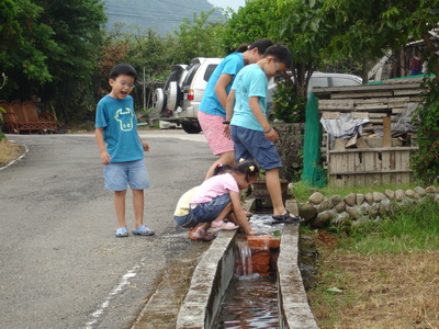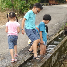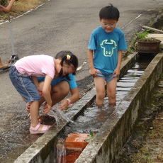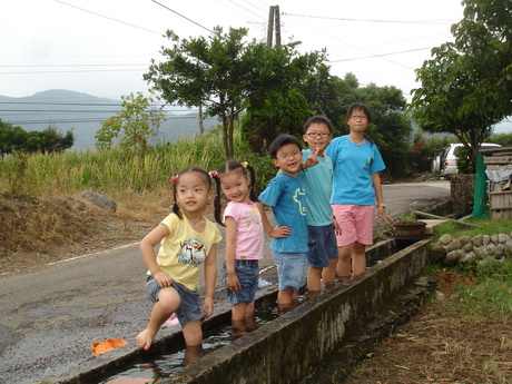 小朋友們愈玩愈高興,把原先的乾乾的田裡,撥水撥到積了滿滿的水了。