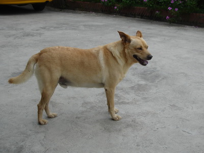 因為才過中午,門前沒看到任何人,原以為大家去了會場擺攤,在門口喊了幾聲,就見主人賴媽媽出來,跟著一隻狗也跑來,這間地瓜園的名字,就是來自這一隻伺養的狗─旺旺。大夥寒暄幾句,知道旺旺地瓜園今年沒在會場設攤,但早幾週已有許多慕名前來挖地瓜的遊客,其中還不乏是由三寶家庭網站的引導而來的呢。這也理所當然,在爸爸的設計下,網路上針對『金山地瓜』的搜尋結果,我們可是排在前面的。
