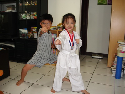 很久以前就覺得蓉蓉適合去學跆拳道,也打算要讓她去練。不過,在完全沒有任何慫恿蓉蓉的情況下,她自己就選擇跆拳道了。而我們當然就是順著她的意願讓她去練囉。