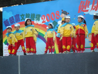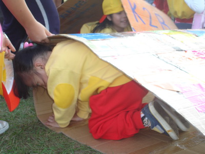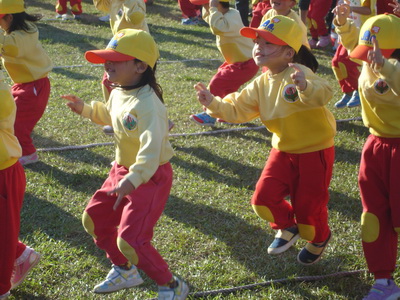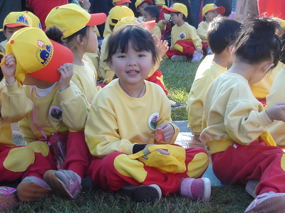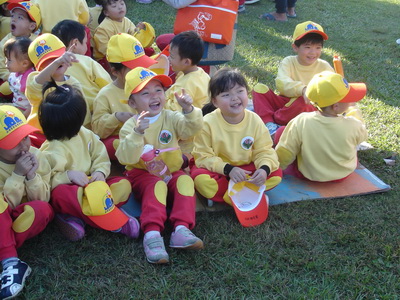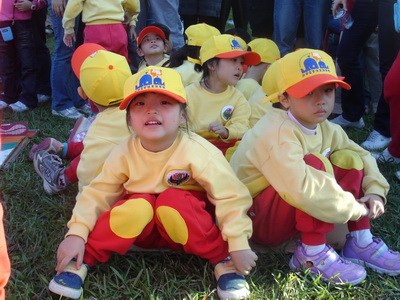 之後還有一些我們沒在注意的表演活動……接著大部份的時間就是大班、小班及中班輪流著出場舉行趣味性的運動項目,還沒有輪到的,就在一旁休息。