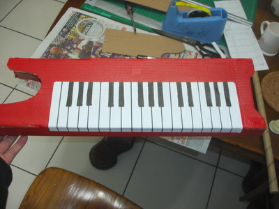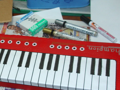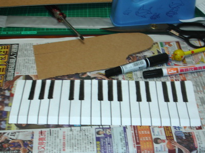在一般的白紙上,用黑色麥克筆畫出線條,是鍵盤。