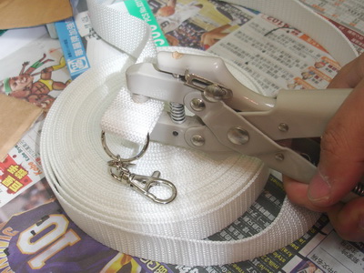 肩帶的製作就用這個……嗯……尼龍帶和鑰匙圈扣環來做。